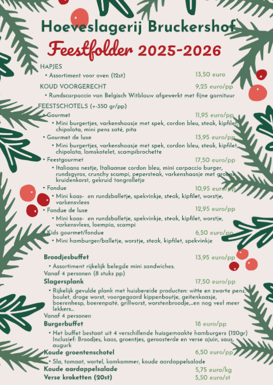 Bestellen kan via mail info@bruckershof.be of in de winkel