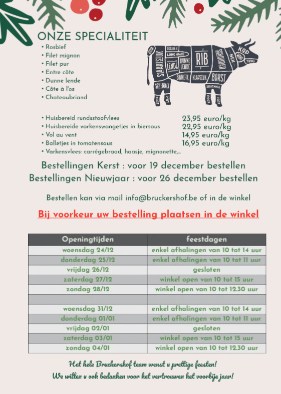 Bestellen kan via mail info@bruckershof.be of in de winkel